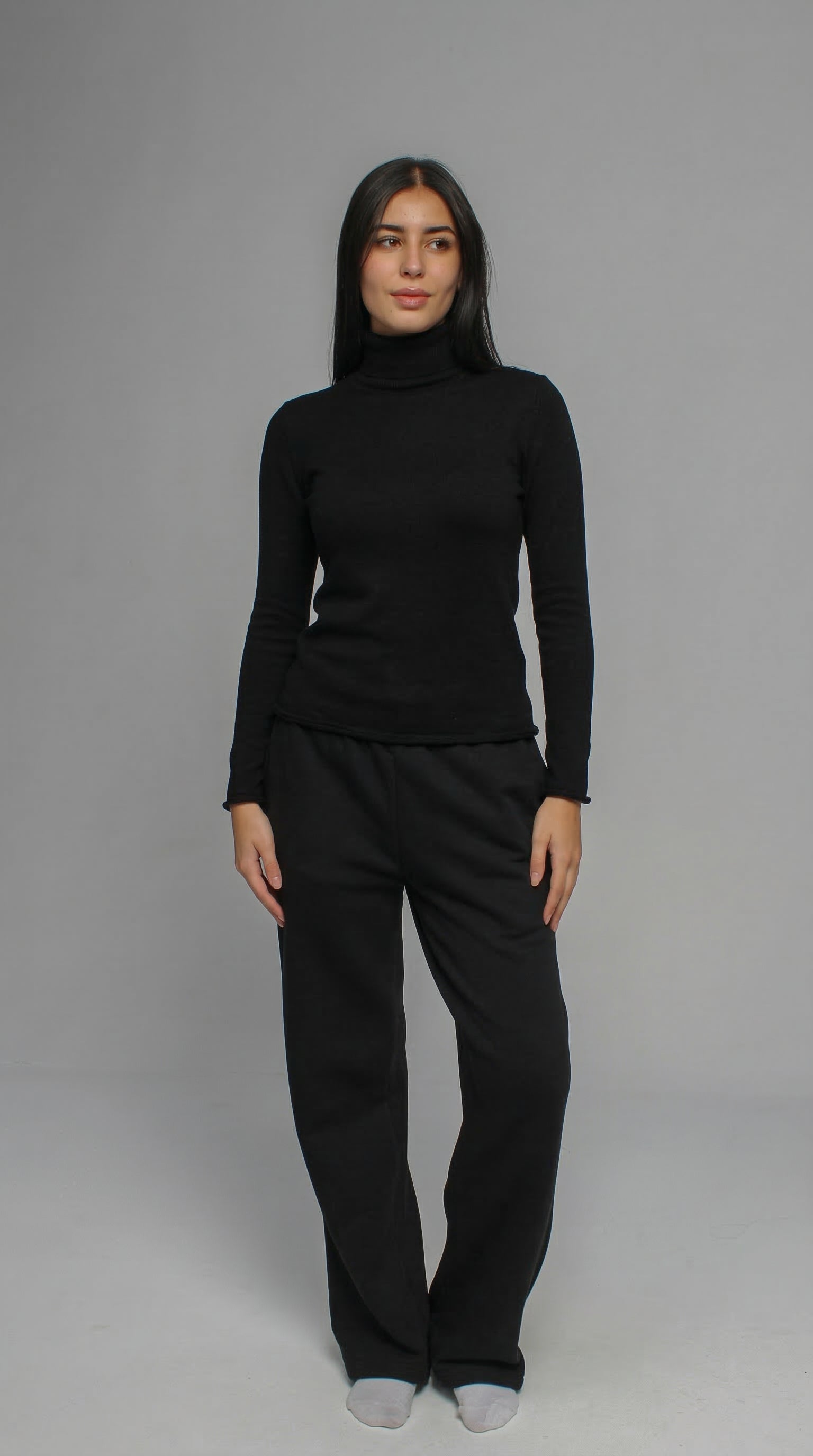 The Knitted High Neck Sweater made from soft ribbed fabric, this top features a high turtleneck and long sleeves. Designed for a fitted silhouette with a clean, minimal look.