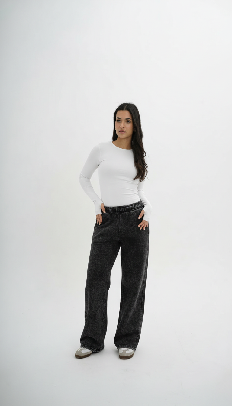The Washed Straight Leg Pants made from soft, durable fabric with a washed finish, these pants feature a straight leg cut and an elastic waistband for comfort. Designed for a relaxed fit with a clean, comfy look.